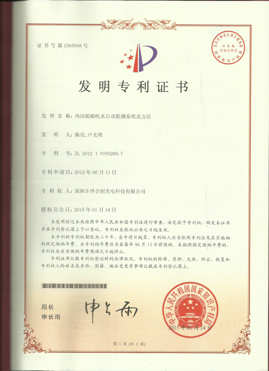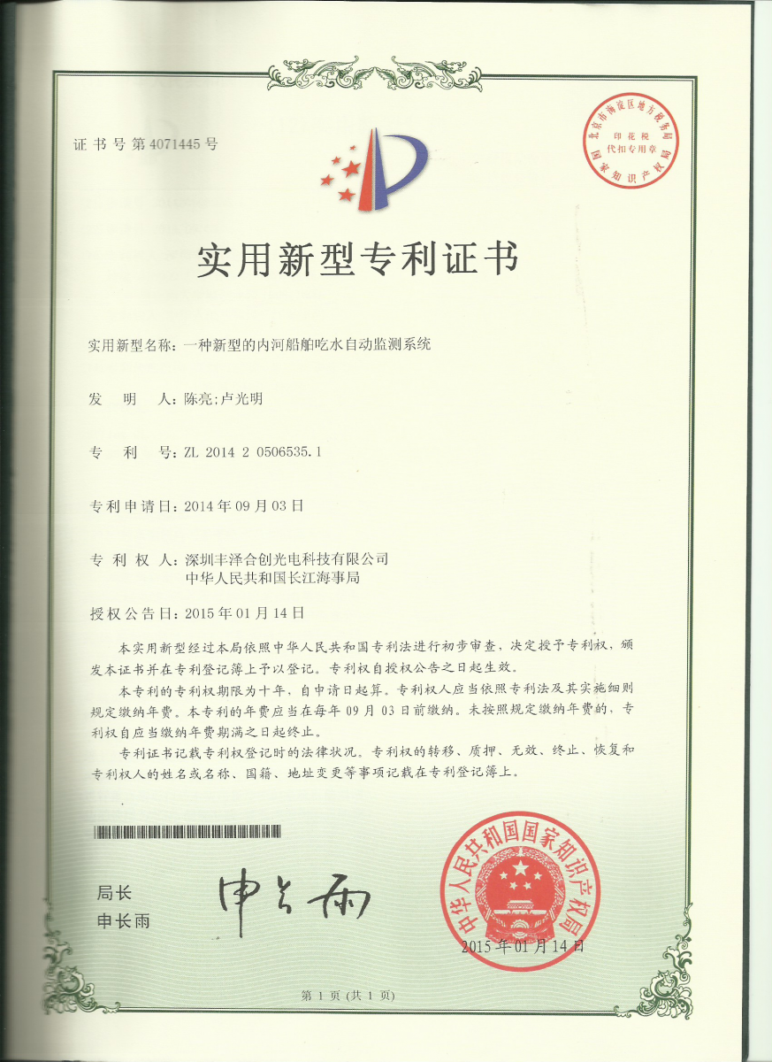 内河船舶超载超吃水等专利通过审核